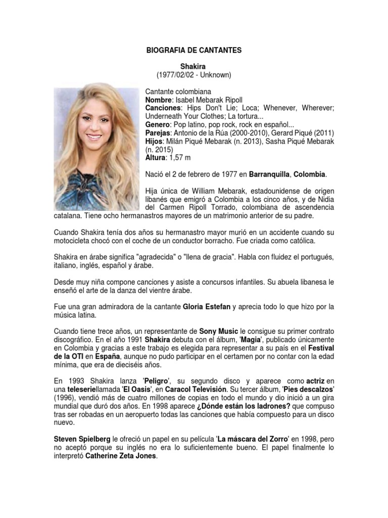 Biografia De Shakira Edad Estatura Pack Medidas Hijos