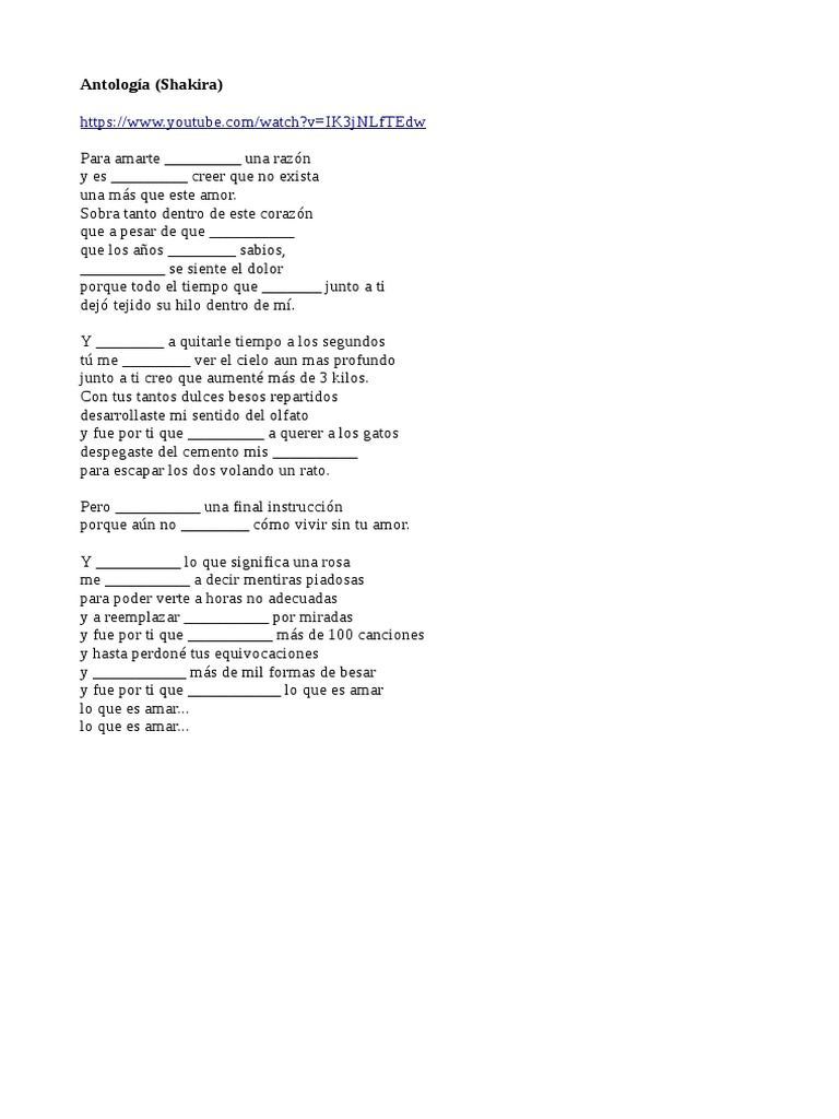 Shakira Antologia Letra Youtube www.youtube.com