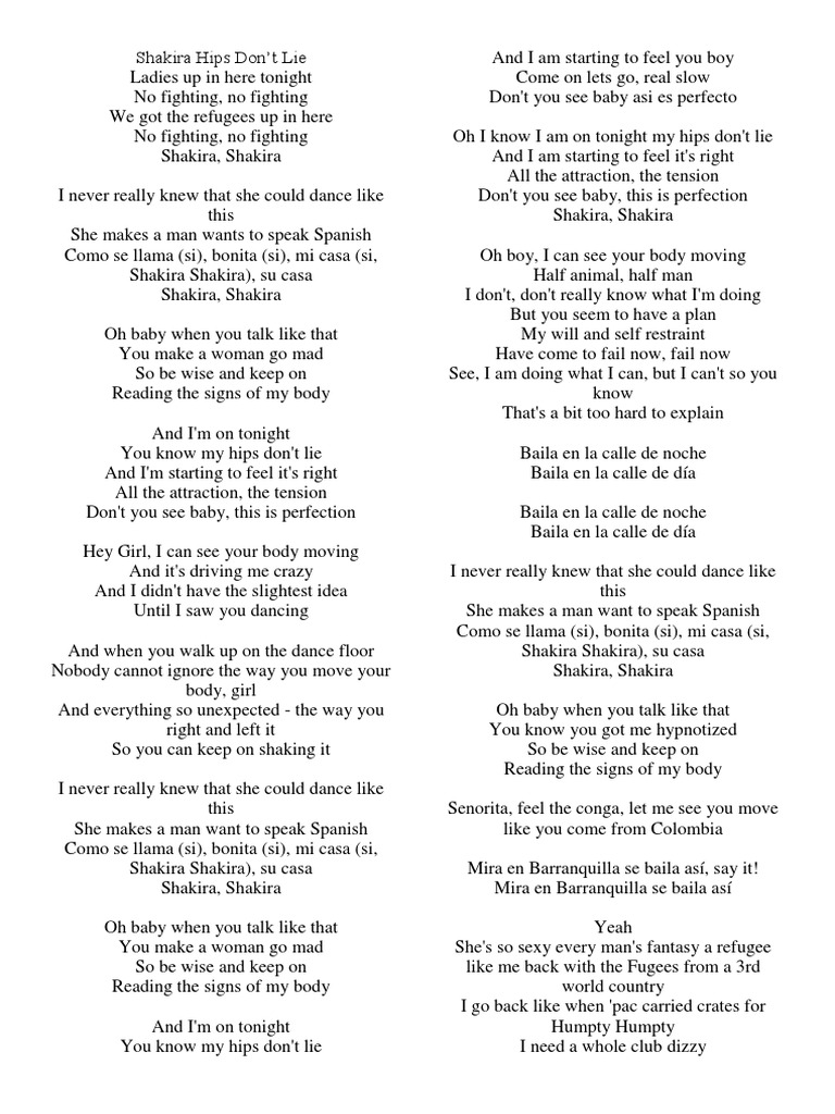 Shakira Hips Don T Lie Lyrics Shakira